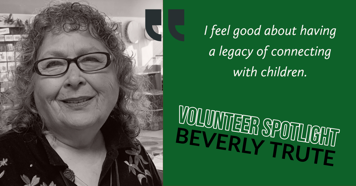 Reflecting on her time spent volunteering, Beverly concludes that she loves working with children the best. “I feel good about having a legacy of connecting with children. They may not remember me or my face, but they will remember someone who loved them unconditionally.”