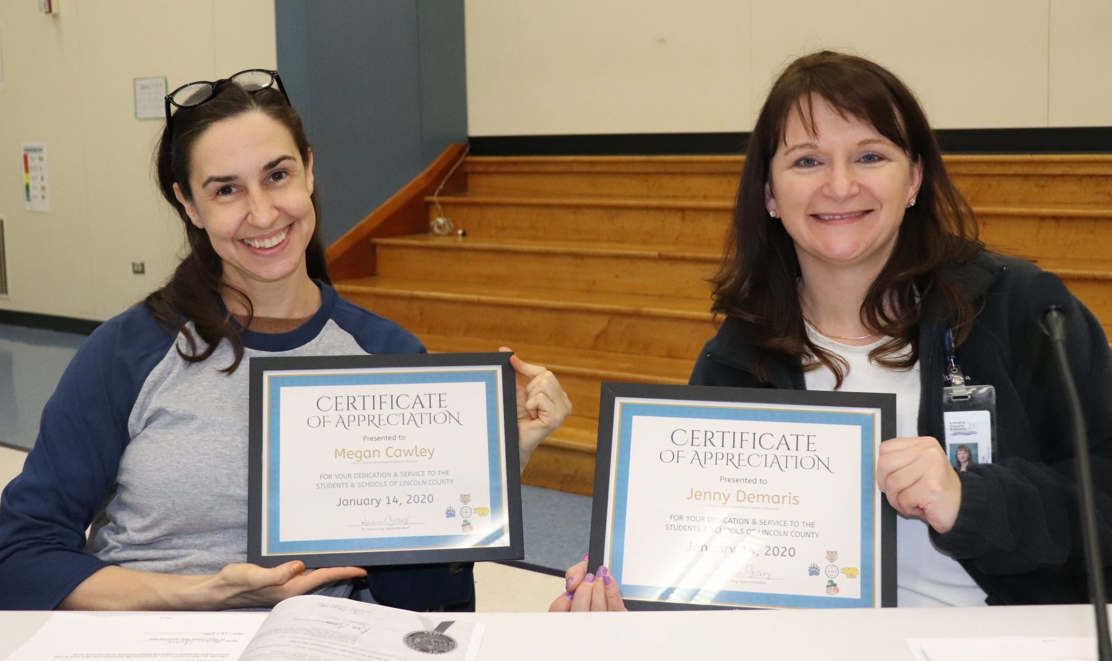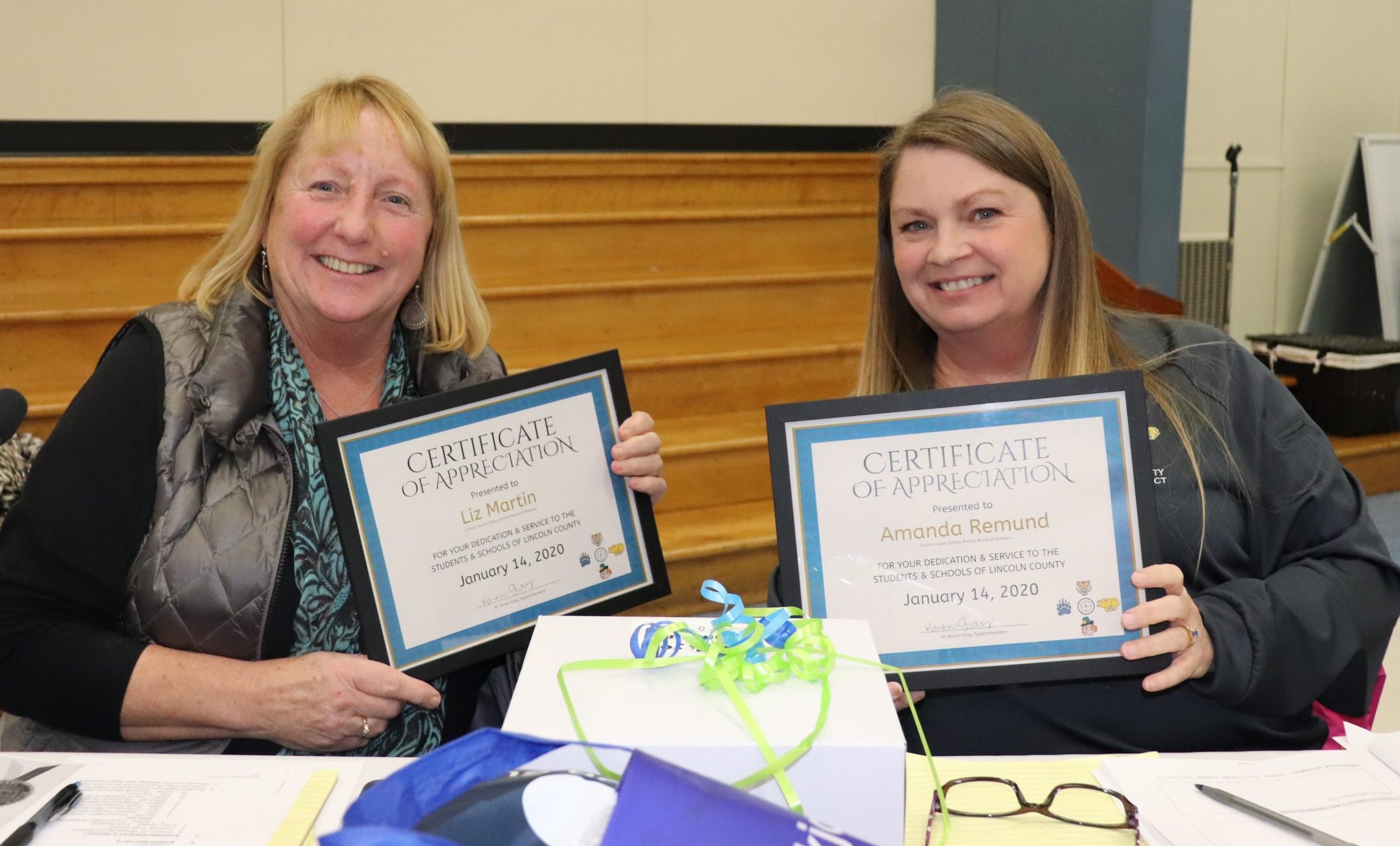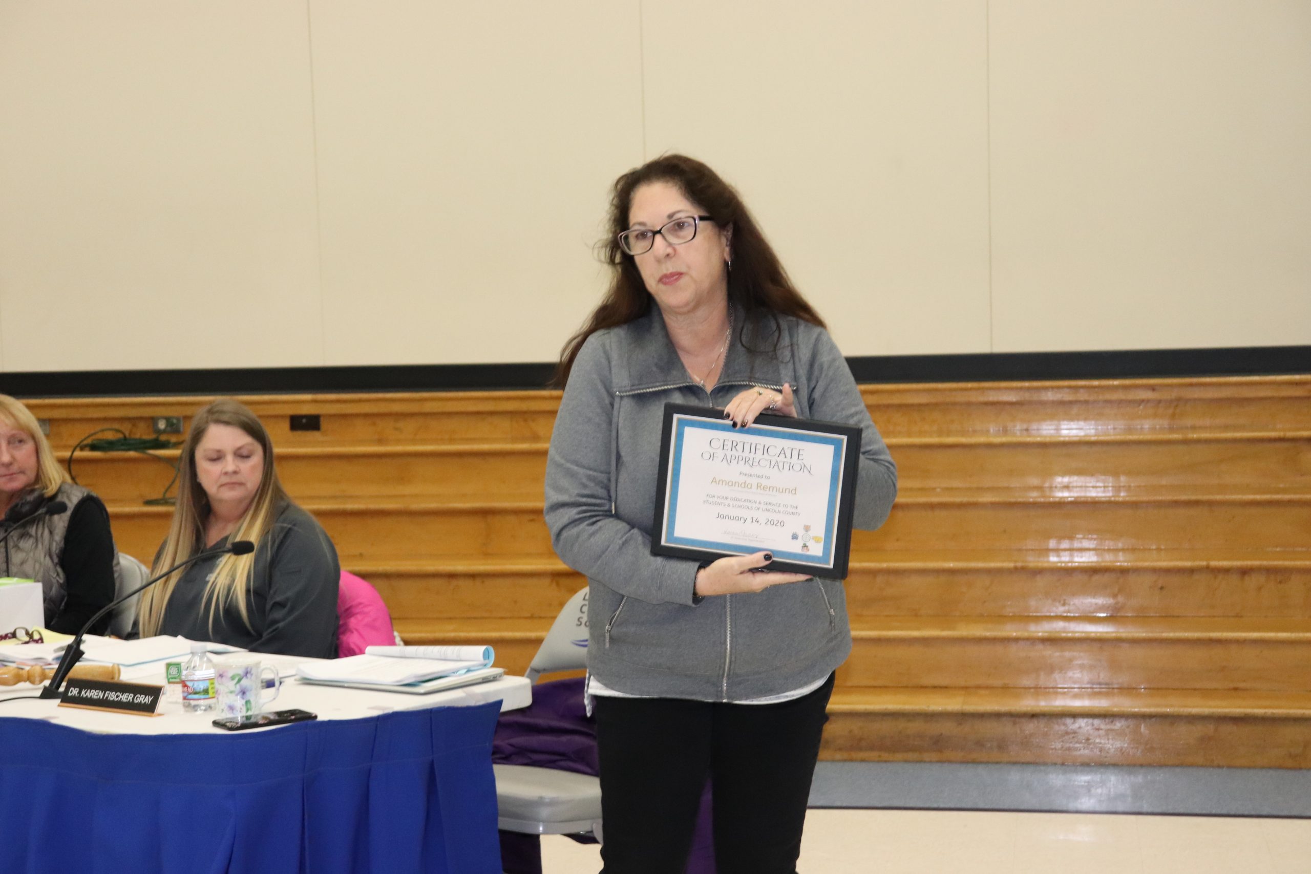 - Dr. Karen Gray Presents Certificate of Appreciation to our School Board for serving the youth and families of Lincoln County.