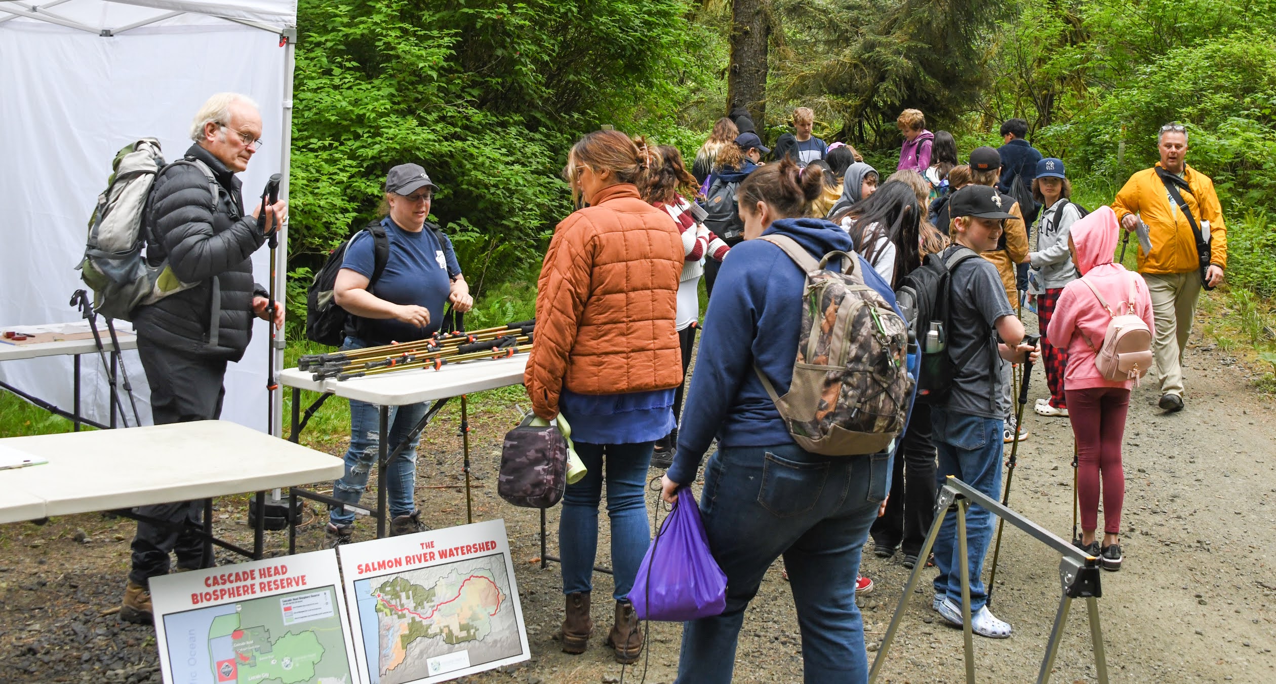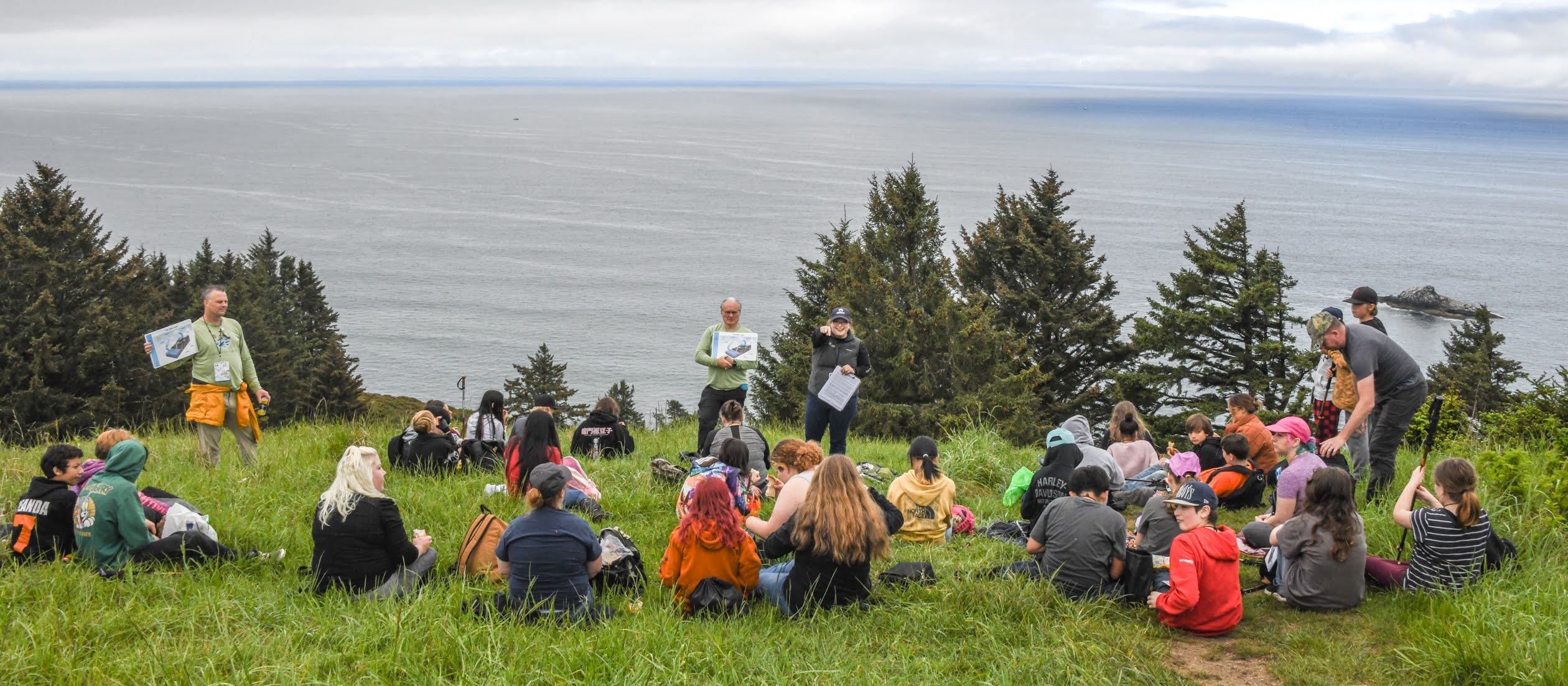El Sendero de la Gota de Lluvia al Mar es un nuevo sendero educativo de la Colaboración de la Biosfera de Cascade Head (CHBR) que va desde la alta pradera “Knoll” sobre el Pulgar de Dios, luego a lo largo de una cuenca de bosque tropical costero a pequeña escala, hasta el borde del Lago Perdido y su presa de castores remanente, luego por el desfiladero y en un pequeño delta de abanico de estuario donde el afluente se encuentra con el río Salmón. Ocho círculos de aprendizaje a lo largo del sendero proporcionaron a los estudiantes tableros de campo educativos y códigos QR que enlazan con vídeos que muestran lo que le ocurre al agua cuando pasa de “la gota de lluvia al mar”.