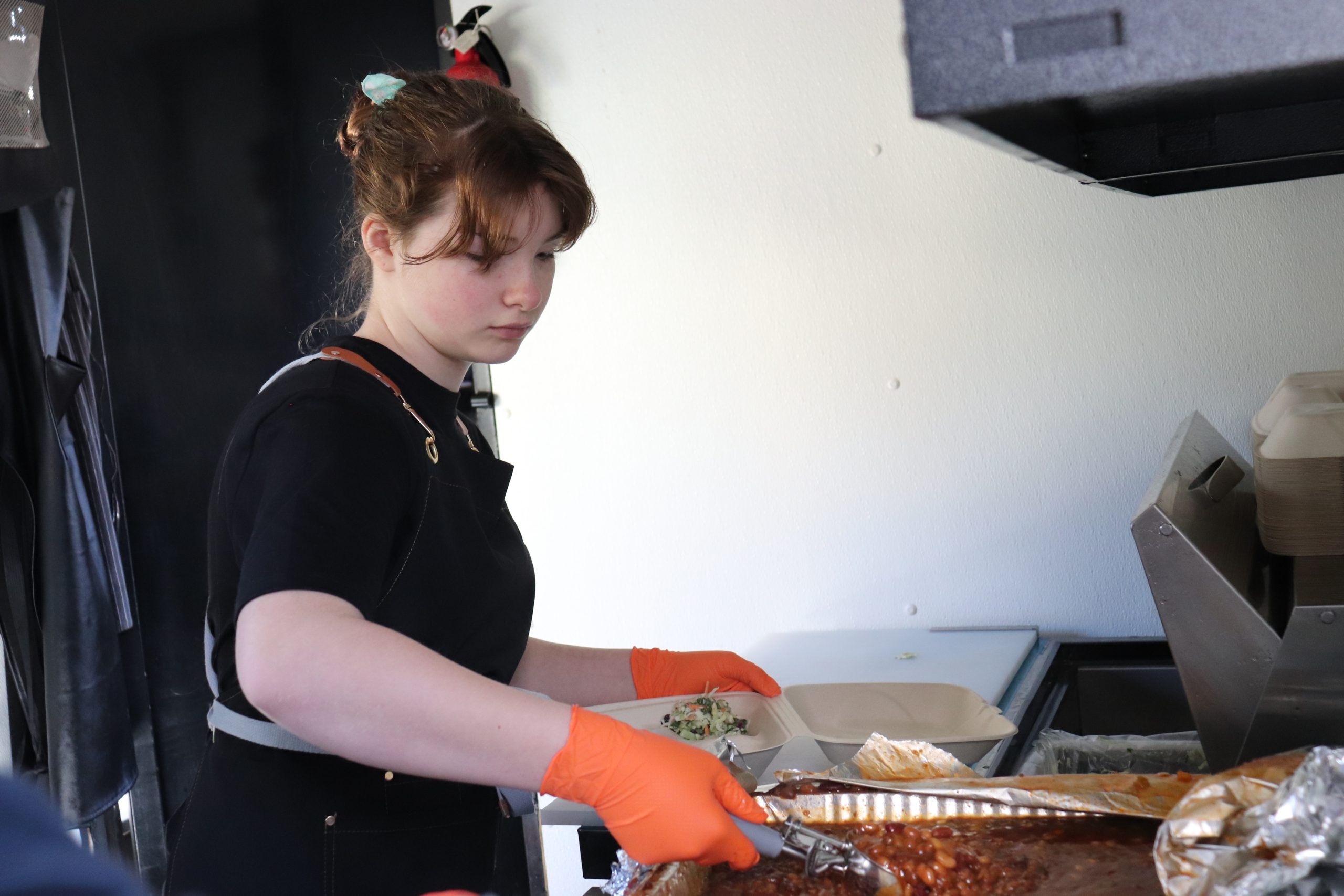 Luna Ewen, estudiante de último curso, creció en un hogar mexicano donde cocinar con la familia era algo cotidiano. Como jefa de cocina del camión de catering, Ewen dice que ha aprendido sobre preparación de alimentos, manipulación segura de alimentos y técnicas de atención al cliente, todas ellas habilidades valiosas en cualquier carrera que pueda elegir. Aunque expresa su amor por la barbacoa, Ewen dice que lo que más le gusta es enseñar a los niños a cocinar. “El único problema es no tener tiempo suficiente para aprenderlo todo”, afirma.