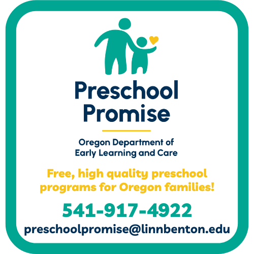 Prepare your little ones for kindergarten and a life of learning with a quality, no-cost preschool experience that’s personalized to your child’s needs and learning style. The 2024-25 Preschool Promise Application is open! If you reside in Oregon, have a child ages 3-5, and meet income requirements, you could qualify for FREE preschool! Prepare your little ones for kindergarten and a life of learning with a quality, no-cost preschool experience that’s personalized to your child’s needs and learning style. https://lfforms.linnbenton.edu/Forms/PSP24-25