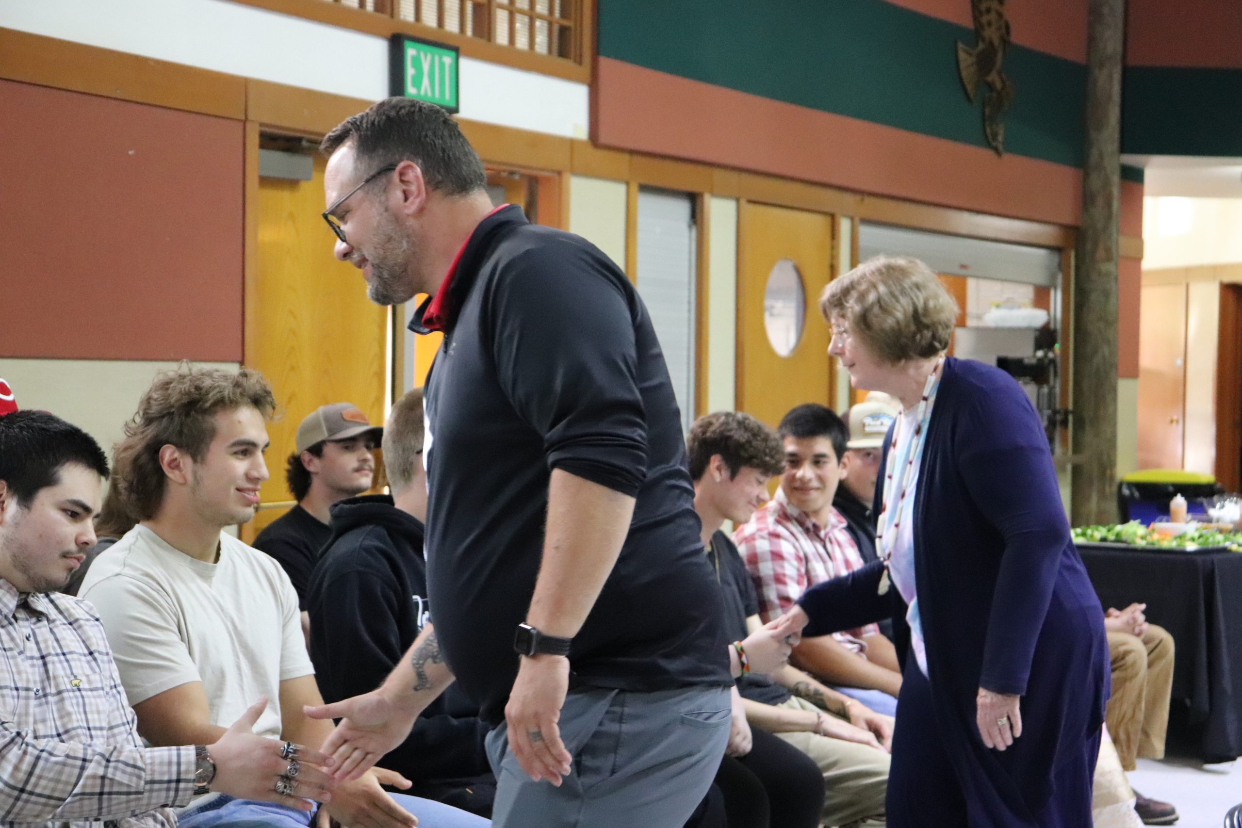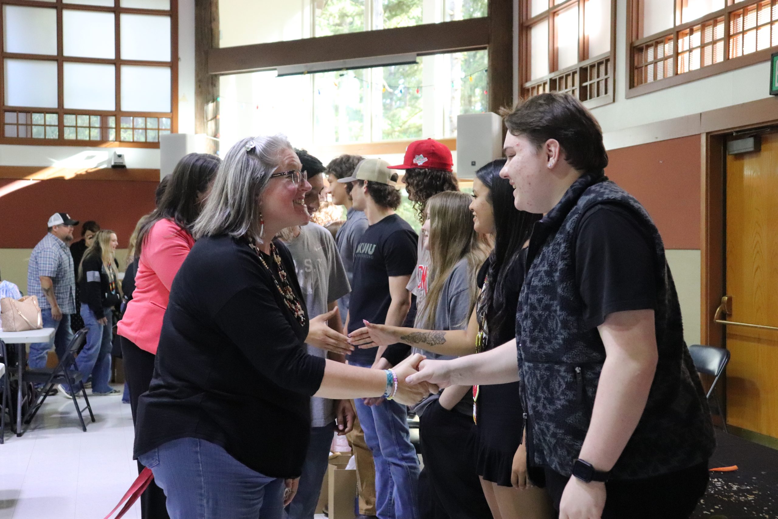En la tradición de Siletz, los números pares suelen considerarse de mala suerte. Sin embargo, cuando se trata de collares de graduación, los números pares tienen un significado especial. Los miembros del personal del instituto de cada graduado elaboraron collares únicos de cuatro vueltas, que simbolizaban cada uno de los cuatro años de instituto que los estudiantes habían superado con éxito. Los collares, junto con otros obsequios, se entregaron a los graduados como muestra de sus logros y del orgullo de la comunidad por los mismos. ¡FELICIDADES a los graduados!
