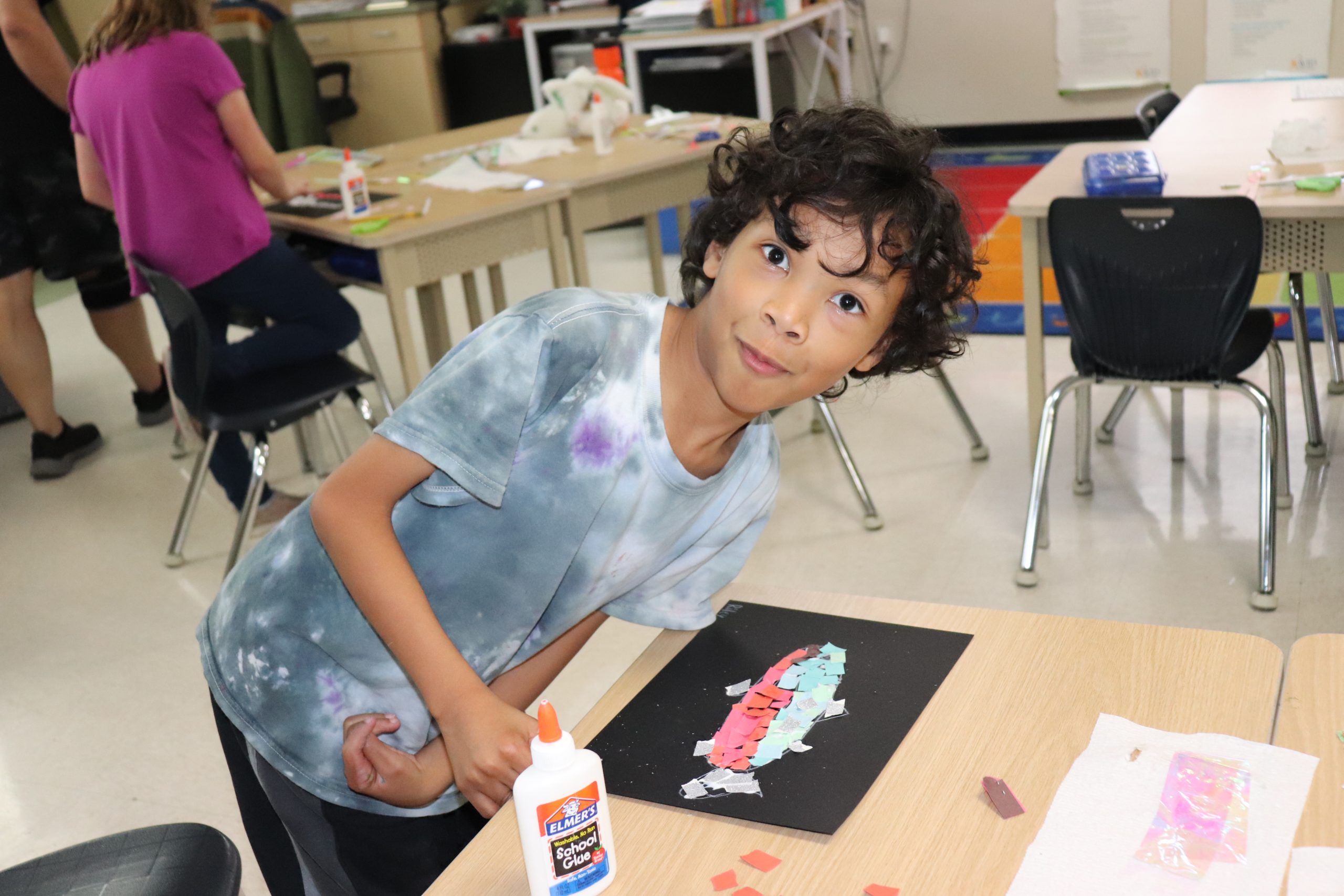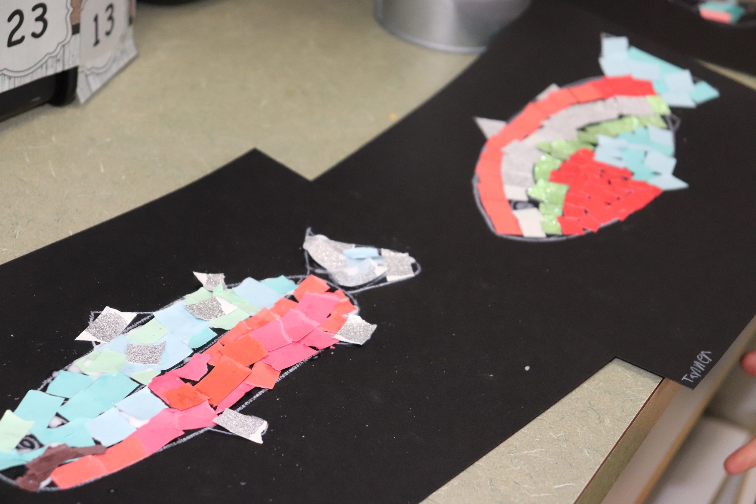 Los estudiantes no sólo reciben lecciones de arte muy profesionales con experiencia práctica, sino que también ven la integración del plan de estudios de ciencias y estudios sociales que están aprendiendo”. En un ejemplo de este plan de estudios integrado, los estudiantes de tercer grado de Taft que estaban estudiando el salmón aprendieron sobre el arte del mosaico y crearon su propio salmón de mosaico de papel. “Estas lecciones facilitan la oportunidad de muchos momentos “Ah Ha” cuando los estudiantes reconocen y recuerdan cosas que han aprendido en clase y luego construyen sobre ese conocimiento de manera creativa”, dijo Eddy.