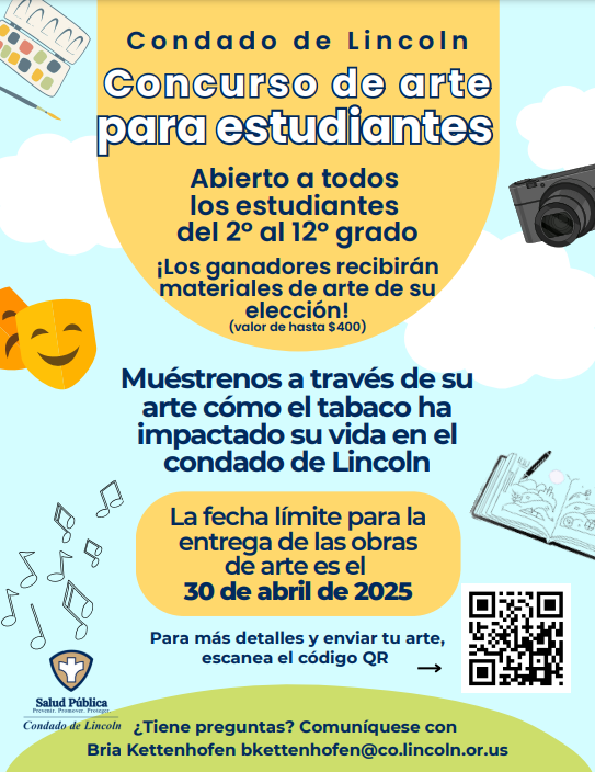 La Salud Pública del Condado de Lincoln en cooperación con LCSD está patrocinando un concurso de arte para estudiantes en los grados 2do-12vo. El tema es «Breathe Deep: You’ve Got This» y se invita a los estudiantes a presentar una obra de arte original basada en uno de los siguientes temas: