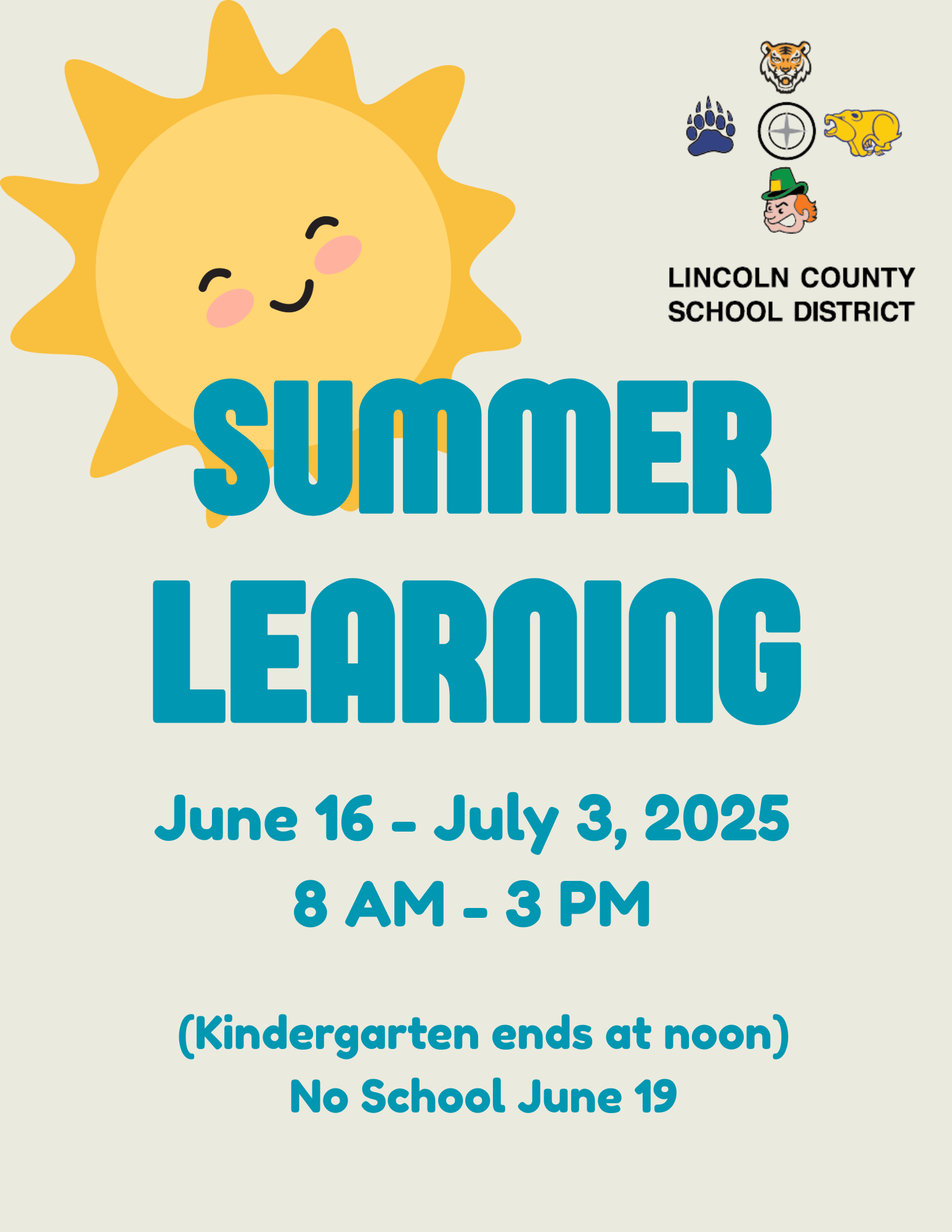 Lincoln County School District is excited to offer two unique summer learning programs designed to support student success. Incoming kindergarteners are invited to attend a transition program designed to get them ready for school. All incoming kindergarten students who will be 5 before September 1, 2025 and plan on attending an LCSD kindergarten in the fall are encouraged to attend.